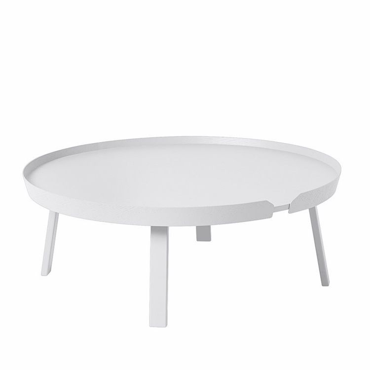 Around sofabordet fra Muuto er karakteristisk i sit design og skiller sig ud fra mængden med sine runde former, firkantede ben og forhøjede runde kant. Around sofabordet kan placeres foran sofaen eller bruges som et lille siddebord ved lænestolen eller sofaen afhængig af hvilken variant man vælger, giver det mulighed for brug i forskellige rum.