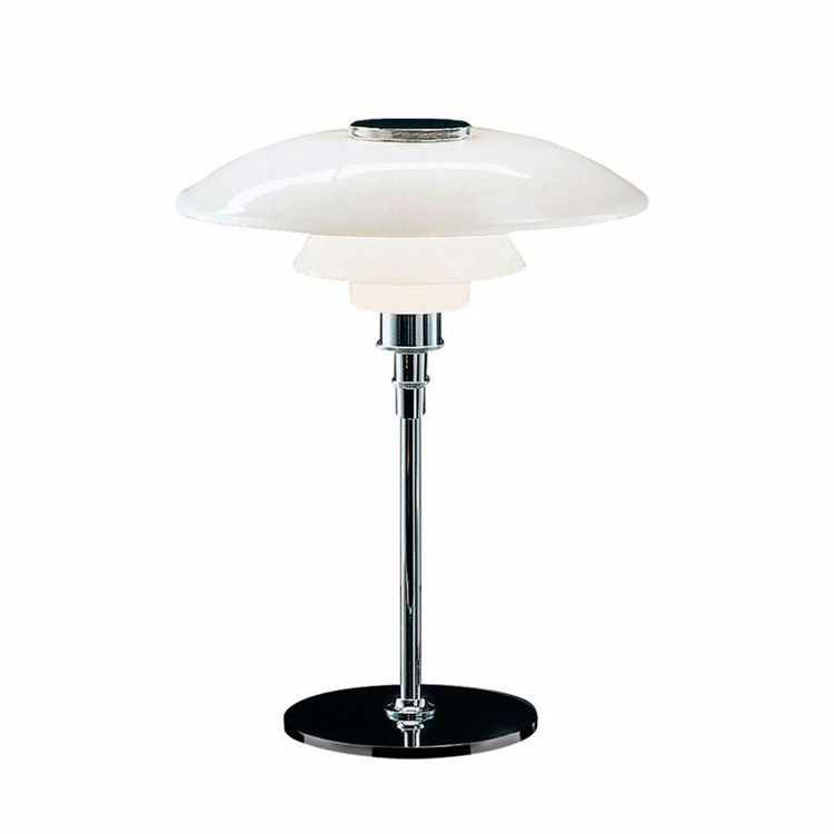 Louis Poulsen PH 4½ - 3½ bordlampe er en af Poul Henningsens smukke og ikoniske designs. Lampen er en af hans velkendte designs, der med sit 3-skærmssystem er udviklet til at skabe et blændfrit og roligt lys.