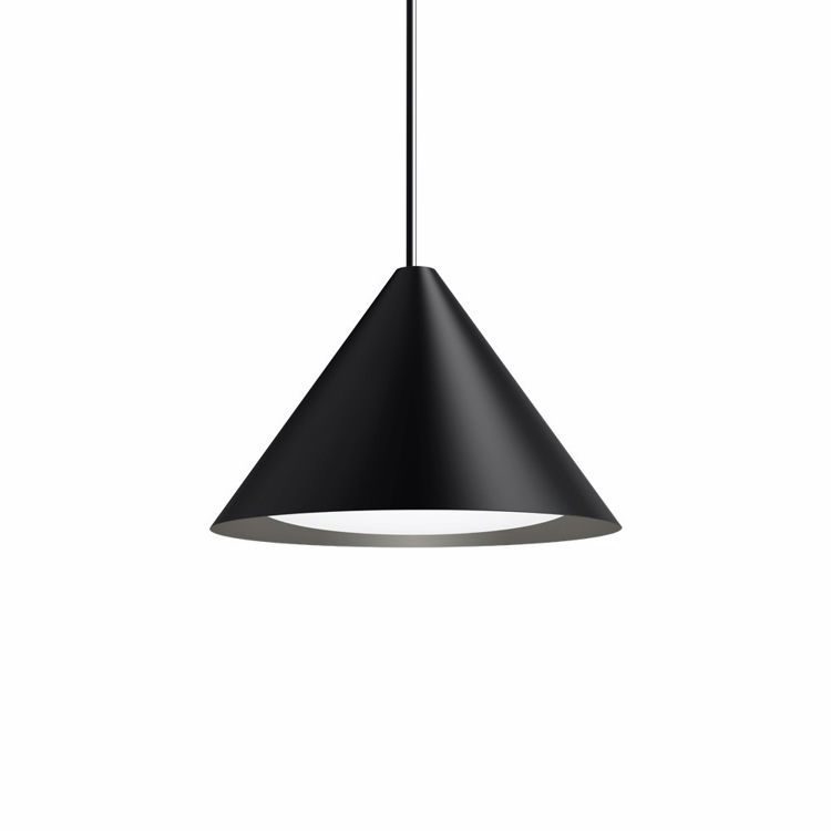 Konen från Louis Poulsen designades av Jakob Lange och finns i 4 storlekar, som sträcker sig från en mycket liten på 17,5 cm i diameter och ända upp till 65 cm. Hänget är tillverkat av tecknat aluminium och är våtlackerat i svart eller vitt. Lampan är perfekt att använda på många olika sätt. Använd den antingen som ett kluster, kombinerat över storlekarna, eller som en enda lampa.