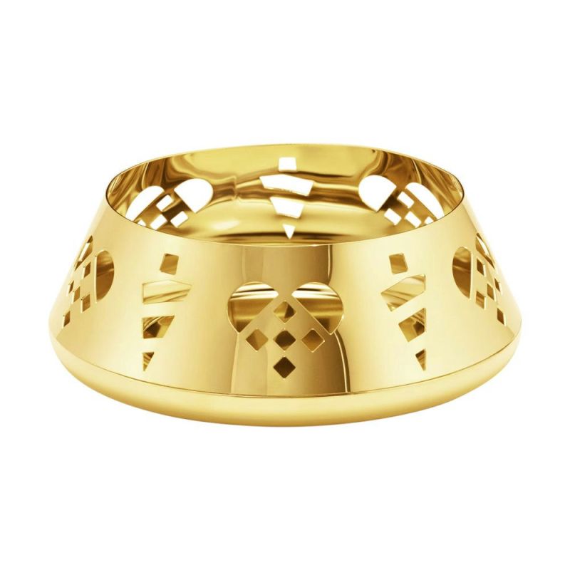 Denna gnistrande ljusstake, belagd med 18 karat guld, passar perfekt till blockljus och framhäver elegant den varma glöden från det levande ljuset. Designen är inspirerad av klassiska danska julmotiv, och ljusstaken har vackra utskärningar av flätade julehjärtan och strutar, som skapar en mysig stämning i ditt hem.