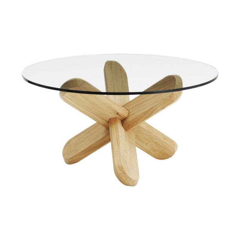 Knut soffbord. Inspirerat av klassiska tredimensionella träknep har den tyska designduon Rudolph Schelling Webermann skapat ett soffbord som imponerar med sin enkelhet och konstruktion. Bordet monteras utan skruvar eller verktyg och består av tre ben i massiv ek som låses ihop i en skulptural knut, som bär en elegant glasskiva. Resultatet är ett lätt och exklusivt bord med ett lekfullt, arkitektoniskt uttryck.