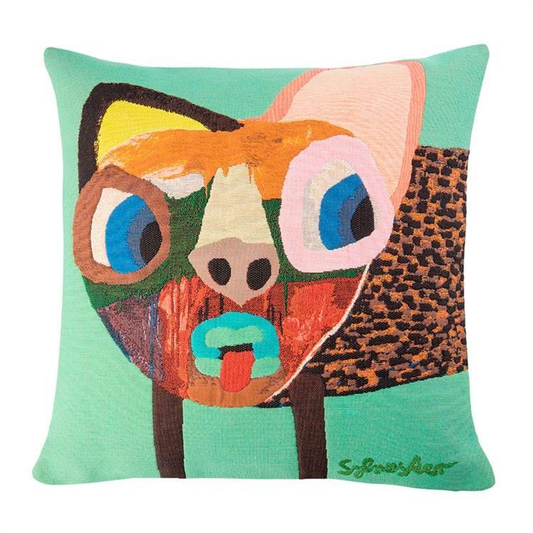 Poulin Design har i anledning af Leif Sylvesters 80 års fødselsdag fået fremstillet denne skønne pude med et farverigt motiv af Leif Sylvesters kunstværk "Småplettet Hund". Siden 2015 har Poulin Design været eneforhandler af de eksklusive puder fra franske Jules Pansu i både Skandinavien og Tyskland.