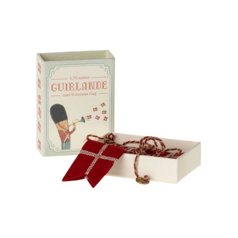 Vacker och stämningsfull flaggranka. Använd den som en dekoration på granen, eller ta fram den till den speciella dagen på året; födelsedag. Flaggrankan kommer i en söt ask. Vinrankan kan tvättas i 30 grader, men ta bort metalldelar först.