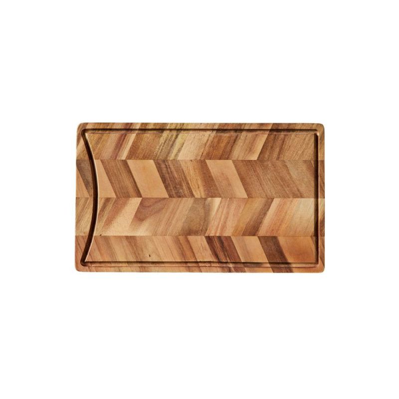 ARC Boards Skär- och serveringsbräda i akaciaträ. ARC-serien är tillverkad av FSC®-certifierat akaciaträ i ett elegant fiskbensmönster som framhäver träets naturliga ådring och färgspel. Brädan har en praktisk skåra på baksidan för ett säkert grepp och kan användas både som skärbräda och ett snyggt serveringsbräde, till exempel. för tapas. Ger värme och karaktär till ditt kök och bord.