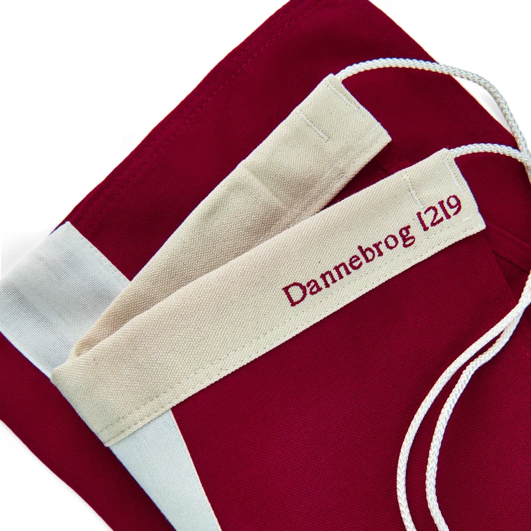 Dannebrog 1219 Jubilæumsflag til lille flagstang. Tid til nyt flag? Dannebrog 1219 er et særligt jubilæumsflag, skabt til fejringen af Dannebrogs 800-års dag. Det har en broderet Dannebrog 1219-detalje på en kraftig lærredslinning og en dybere rød farve, inspireret af de historiske kraprøde søflagsnuancer. Flaget måler 38 x 50 cm og leveres med fastmonteret flagline i en smukt broderet stofpose.