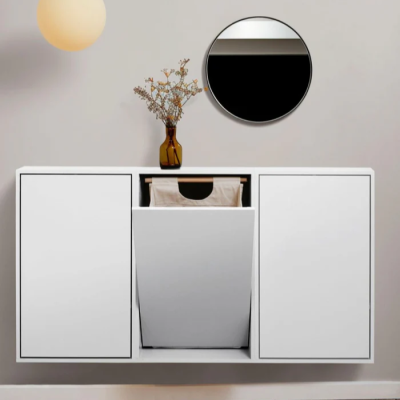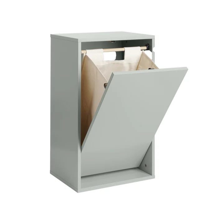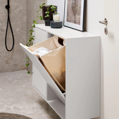 Stilren Tvättkorg. Den väggmonterade tvättkorgen är designad med fokus på funktionalitet och ett enkelt, nordiskt uttryck. Den väggmonterade designen sparar plats, gör golvrengöring enklare och skyddar mot fukt från badrumsgolvet.