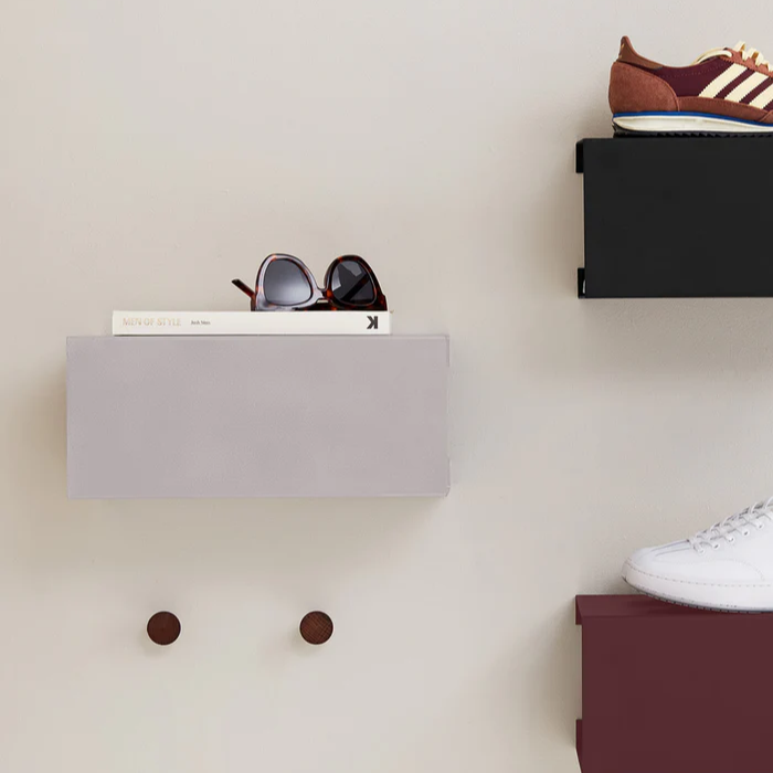 En multifunktionel og stilfuld opbevaringsløsning. BoxShelf er lavet i metal med en smuk, ru overflade, og kommer i en bred vifte af super fine farver, der passer perfekt til enhver indretning. Med BoxShelf kan du skabe din helt egen personlige væg, hvor hylderne kan kombineres efter antal, farver og stil. Det er den perfekte løsning til opbevaring af sko elegant, funktionelt og kreativt.