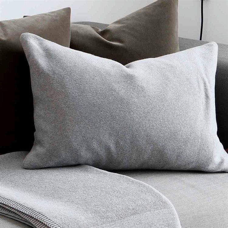 Strikket pude fra By Lohn måler 60x40 cm og er perfekt til brug i stuen, soveværelset, entreen eller hvor der mangler en dekorativ pyntepude.