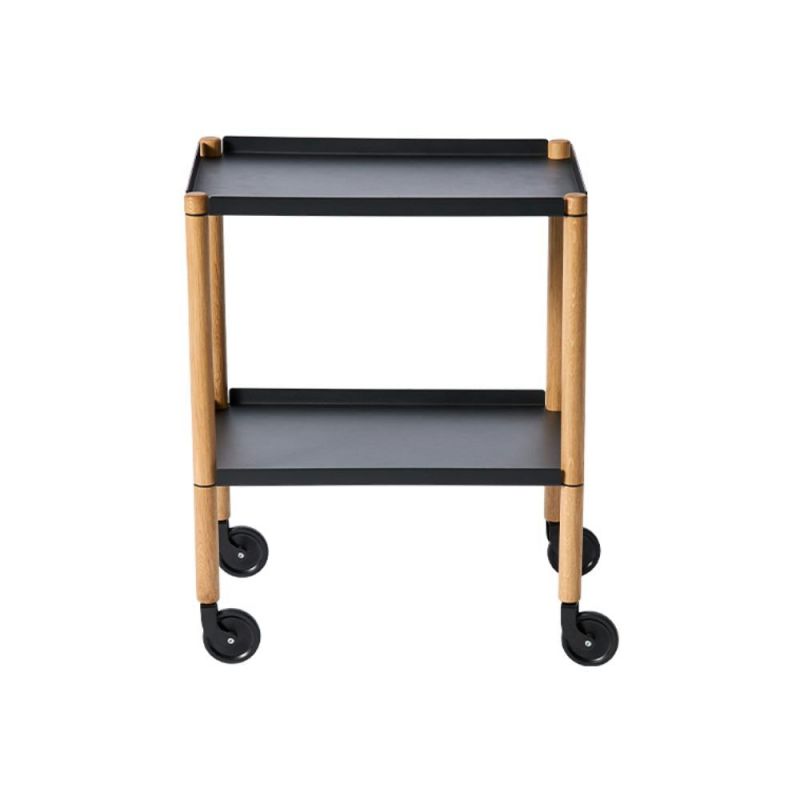 Anslut tabell. Ett funktionellt brickbord med råa, industriella detaljer och skandinavisk estetik. Designad med två metallbrickor och ekben, kombinerar den elegans med funktion. De praktiska hjulen gör bordet enkelt att flytta runt, perfekt som barvagn, sidobord eller förvaring. Levereras plattpackad för enkel transport och montering.