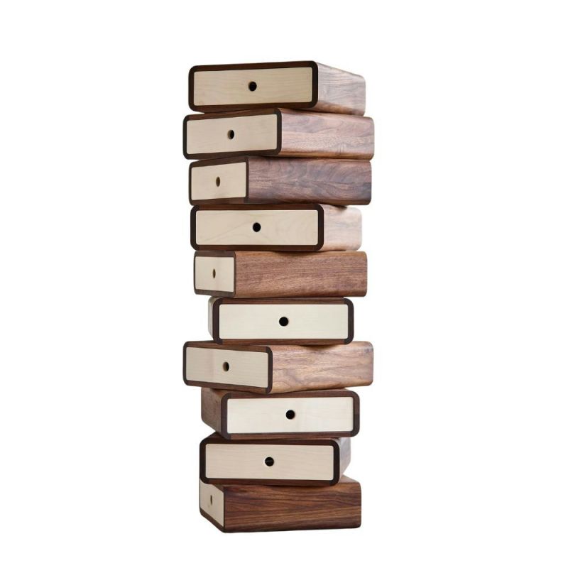 Förvaringsbyrån Turning Boxes är en träbyrå som består av 10 lådor, där var och en kan vridas 360 grader. AK 1020 är en skulptural och dekorativ möbel som kan ändra uttryck efter omgivningen och bjuder in till en lekfull inställning till heminredningen. Det ger möjlighet att skapa en helt unik och funktionell möbel som passar exakt efter dina individuella behov.