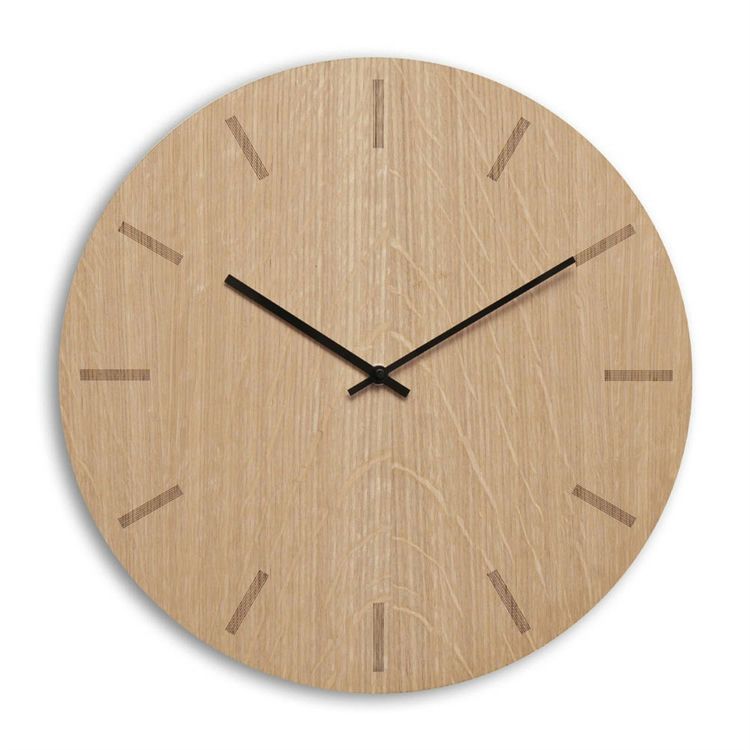Väggklockorna från Danske Hemverk är stilrena och väldesignade, med fokus på nordisk enkelhet och elegans. Klockorna finns i många olika och vackra varianter, men här syns klockan i ljus ek. Klockan är laserskuren av ljus ek och finns med visare i svart, guld, koppar eller silver, var och en ger sitt eget uttryck.