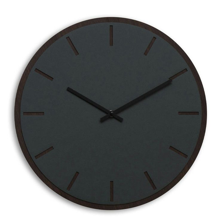 Væguret med smukt mørkt egetræsfiner underlag og en stilfuld overflade i mørkegrønt linoleum (Conifer) giver en enestående og skarp kontrast til den moderne indretning. Uret er velegnet til ethvert moderne hjem og kan skabes med kombinationer af forskellige visere, som hver især giver et smukt udseende.
