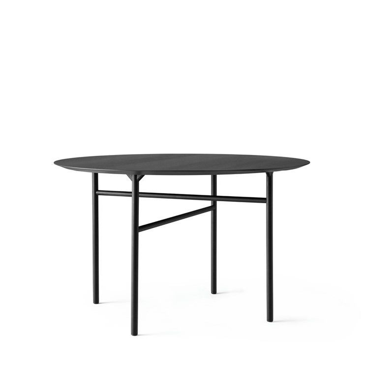 Snaregade spisebordet fra Audo er designet af Norm Architects, som har skabt et spisebord i strømlinet design, som følger hele serien. Spisebordet fås her i den runde model, hvor der er plads til anbefalet 4-5 stole omkring, som er fremstillet af stel i pulverlakeret stål, med bordplade af egetræ.